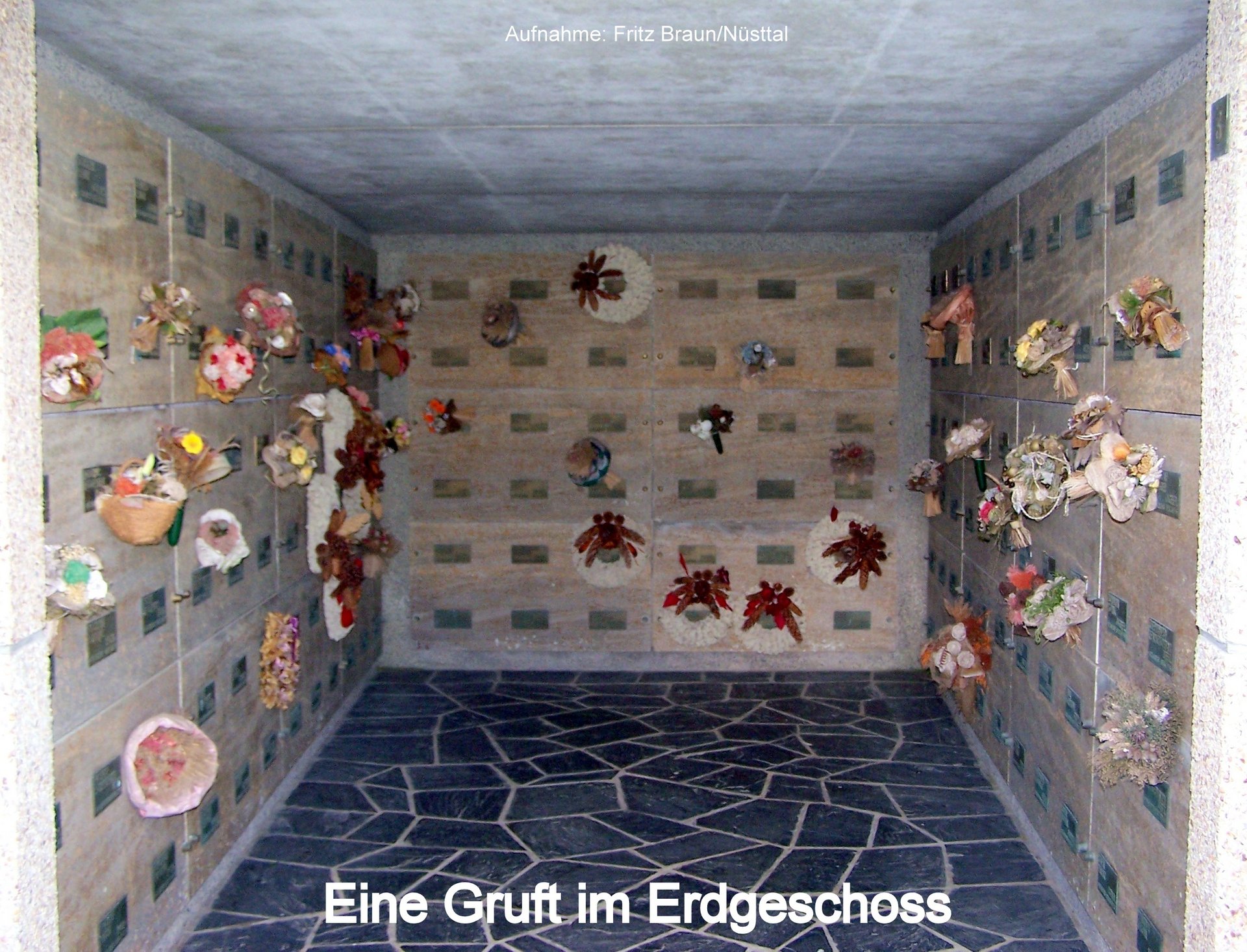 Circular path. There are 34 crypts on each of the two floors, each containing