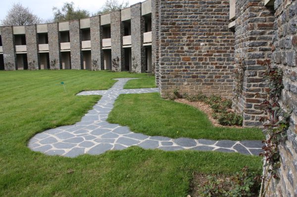Meters wide ramp between the entrance and crypt building. The toilet facilities