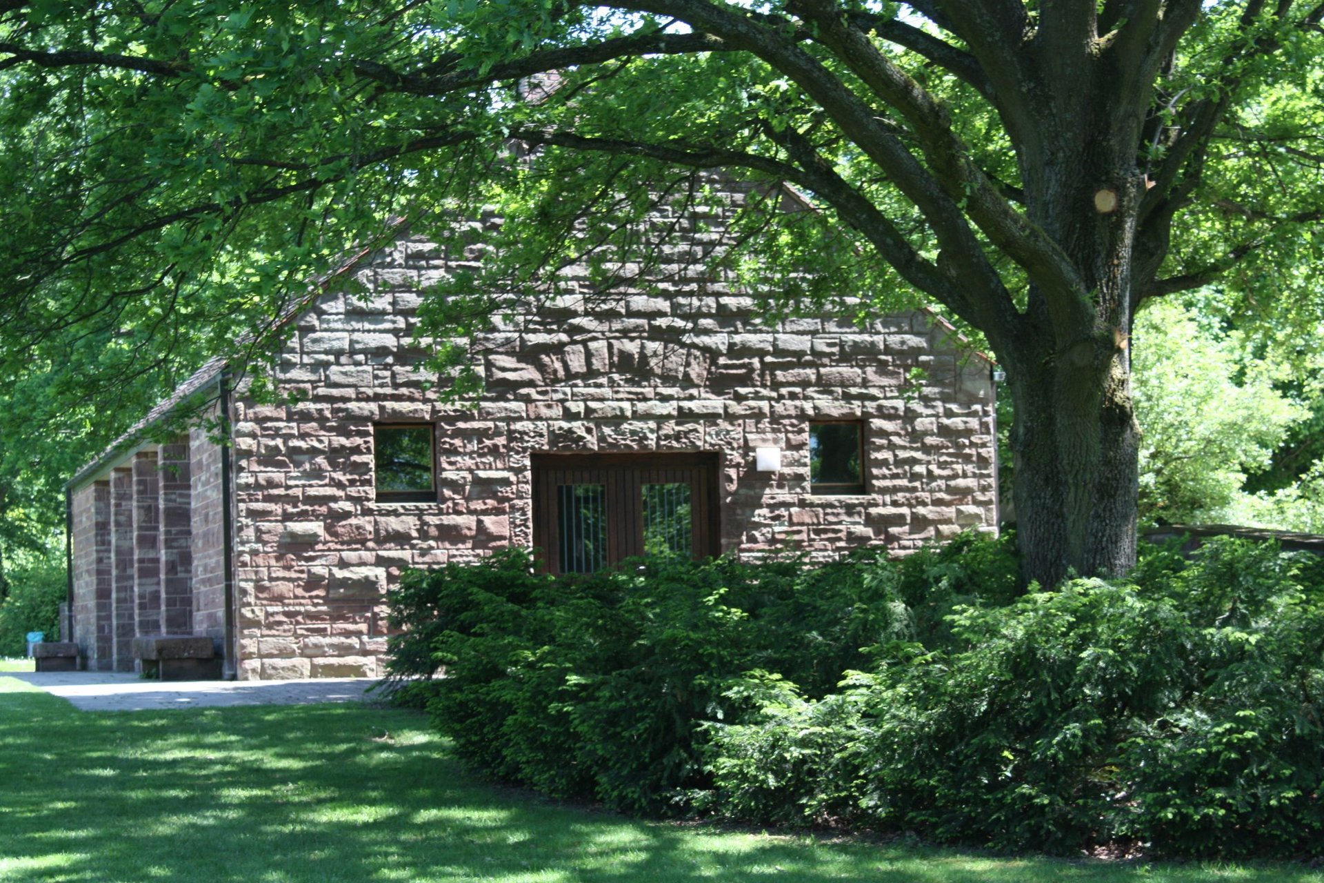 A high cross stands in the middle of the war cemetery. Seven equally spaced stone blocks bear the names of the communities from which the fallen were transferred to Niederbronn-les-Bains. At the end of the main path is the "memorial": a round building made of red Vosges sandstone. In the middle is the comrades' grave. A stele was erected in the hall in memory of Hungarian soldiers who died in France.
