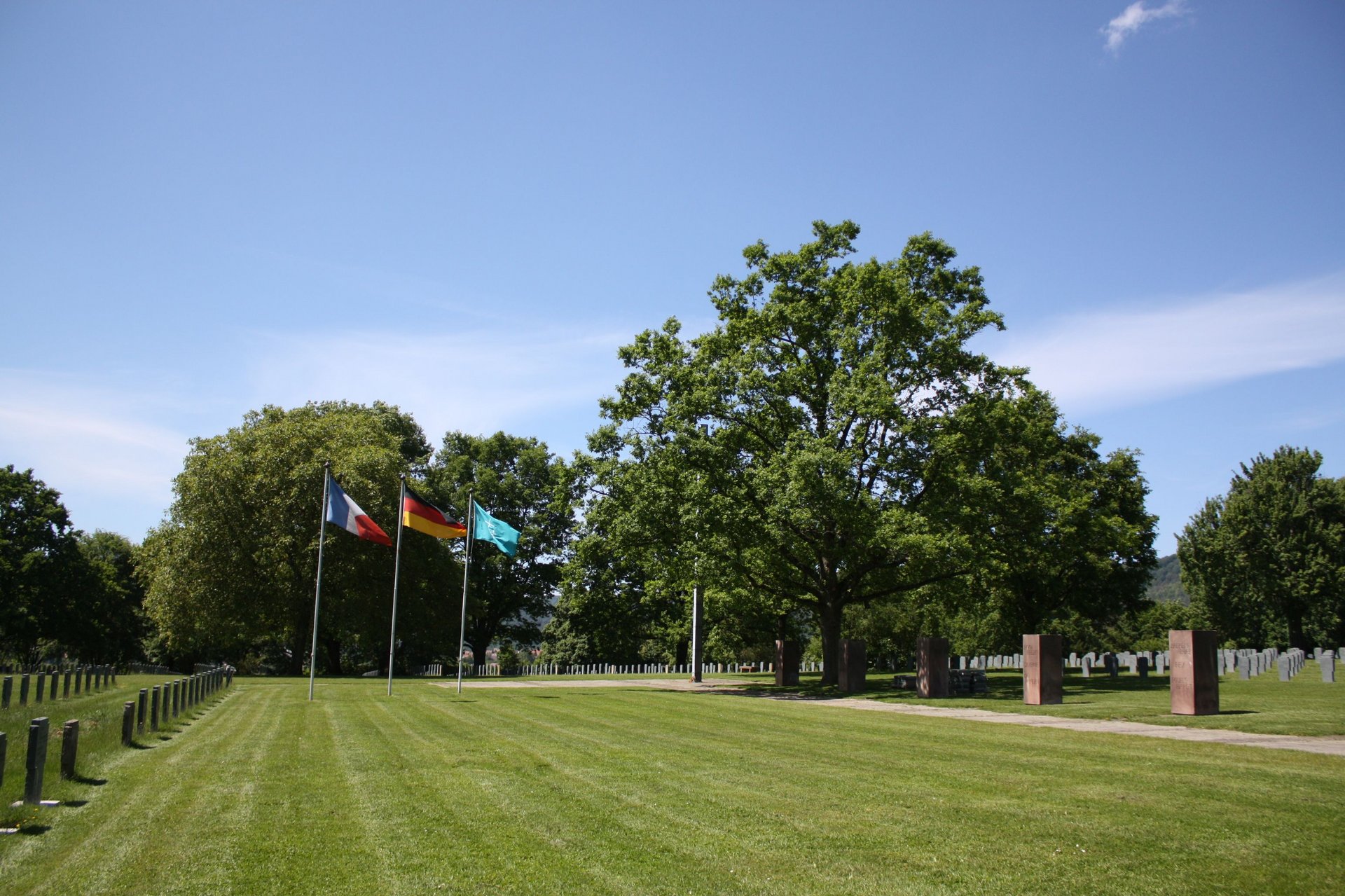 Both Americans and Germans have been burying their dead at Niederbronn-les-Bains since 1944/45. This led to the creation of a German-American cemetery, which remained in existence until the end of the 1950s. In the departments of Bas-Rhin and Moselle, the graves of many thousands of German casualties were scattered across 774 communes in fields and meadows, roadsides and forests. In the 1960s, the decision was made to transfer the American fallen to the Saint-Avold war cemetery in Lorraine and to rebury the German fallen at Niederbronn-les-Bains.
