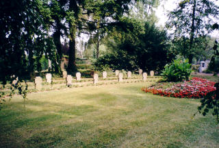 In einem Gräberfeld ruhen 56 Opfer eines Bombenangriffes am 25.05.1944; in
