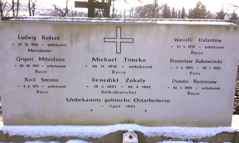 - 1 unbekannte polnische Zwangsarbeiterin, verstorben 1945 sowie