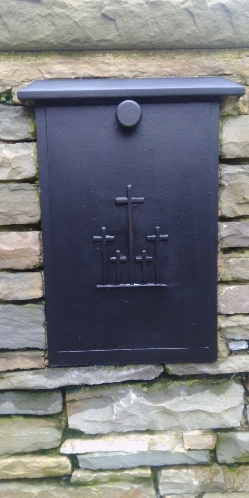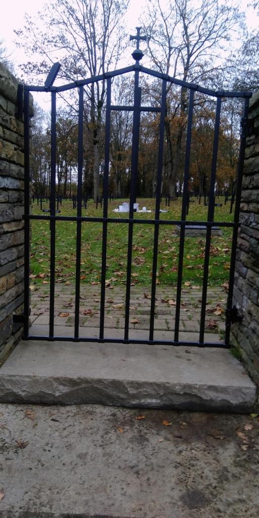 und Büsche erstreckte. Außerdem wurde ein Hochkreuz aus geschmiedetem Stahl als