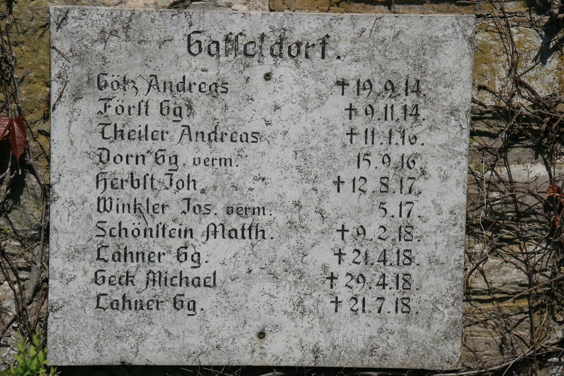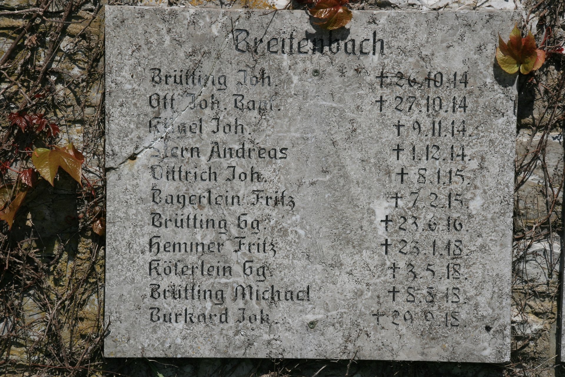 des I. Weltkrieges aus den Orten Breitenbach, Ebermannstadt und Gasseldorf