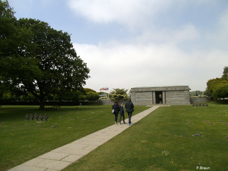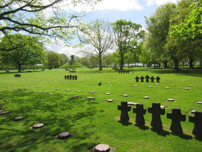 Heute haben 21.245 deutsche Gefallene in La Cambe ihre Ruhestätte gefunden. Im Hügelgrab ruhen 207 unbekannte und 89 namentlich bekannte Tote.