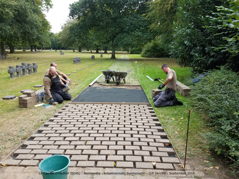 1957 fand unter dem Motto "Versöhnung über den Gräbern" ein internationales Jugendlager statt, bei dem zum ersten Mal Jugendliche aus mehreren Nationen dem Volksbund beim Anlegen einer Kriegsgräberstätte in Frankreich halfen. Neben dem Friedhof liegt der Friedenspark, den der Volksbund 1996 eröffnete. Dort wachsen 1.200 Kugel-Ahorn-Bäume als lebendige Symbole für Frieden und Versöhnung. La Cambe ist der erste Friedenspark des Volksbunds. In den folgenden Jahren entstanden drei weitere in Budaörs (Ungarn), Groß Nädlitz (Polen) und Sologubowka (Russland).