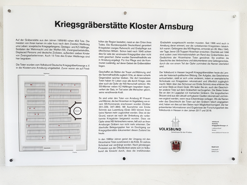Informationstafeln am Rand des Gräberfeldes dem Gedächtnis der Hirzenhainer