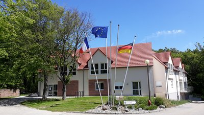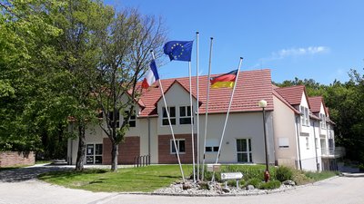 Direkt neben der Kriegsgräberstätte liegt die Internationale Jugendbegegnungs- und Bildungsstätte (IJBS) Albert Schweitzer. Die Einrichtung, in der man auch übernachten und tagen kann, bietet verschiedene Bildungsangebote zu geschichtlichen, gesellschaftlichen und politischen Themen. Das 1994 eröffnete Haus ist – neben Ysselsteyn (Niederlande), Lommel (Belgien) und Golm (Deutschland) – eine von vier Einrichtungen, die der Volksbund Deutsche Kriegsgräberfürsorge e.V. betreibt.